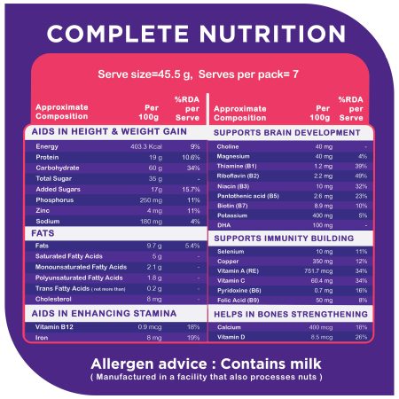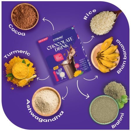 Main Ingredients– Rice, Oats, Jaggery Powder, Foxtail Millet, Skimmed Milk Powder, Whole Milk Powder, Bhim Banana Powder, Cocoa Powder, Ashwagandha Extract, Turmeric Extract.