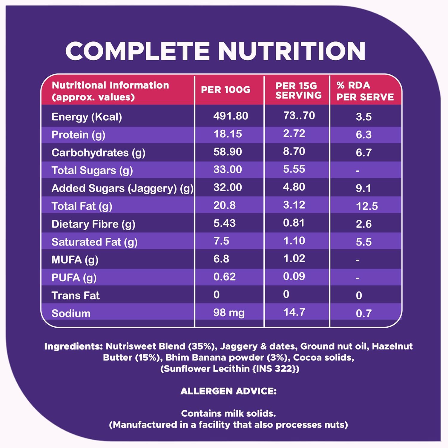 FitBhim Hazelnut Spread is made with Bhim Bananas from Assam, real hazelnuts, cocoa, jaggery, and dates. It contains no refined sugar, no palm oil, and no preservatives—just clean, nourishing ingredients.