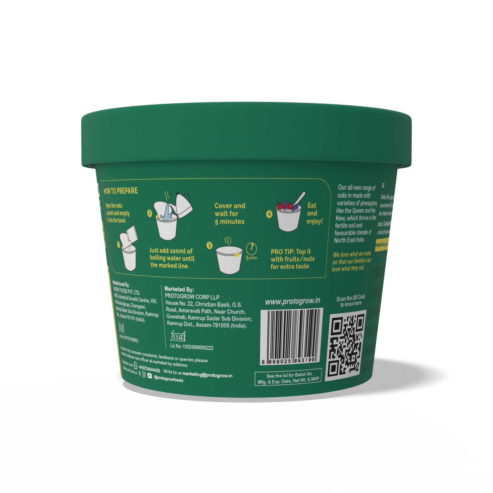 Enjoy a refreshing and nutritious meal anytime with Protogrow Pineapple Instant Oats, a ready-to-eat meal designed for modern lifestyles. Made with wholesome oats and real pineapples sourced from Northeast India, known for their naturally sweet taste and rich aroma. Every bowl contains real pineapple pieces rich in Vitamin C and natural antioxidants, bringing a naturally fruity flavour to every bite.
