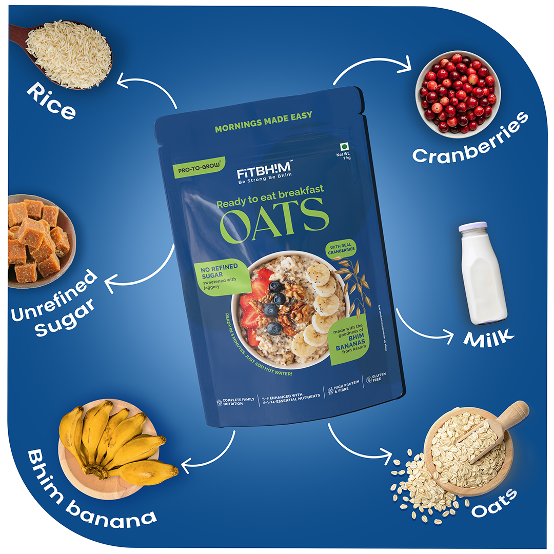 It supports digestion, heart health, and sustained energy with high-fiber oats, Bhim bananas, and iron-rich jaggery. It's a clean-label, everyday breakfast for kids and adults.